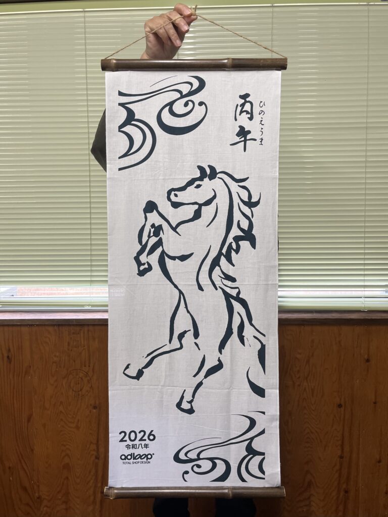 弊社が毎年作成している干支の手ぬぐいと共に。🐎