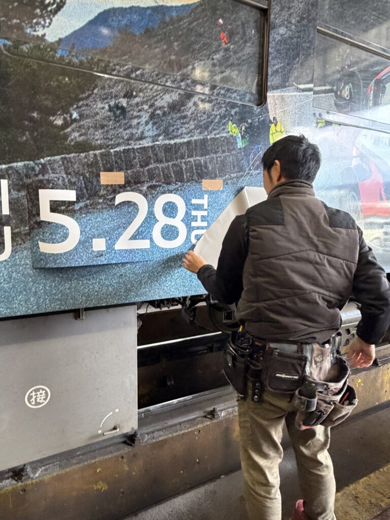 毎年恒例の明知鉄道RallyaJapanラッピングの日付変更を行いました。